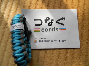 また、後援の一般社団法人防災備蓄収納プランナー協会から、参加者全員へ、ブレスレット防災グッズ「つなぐcords」が贈られました。