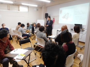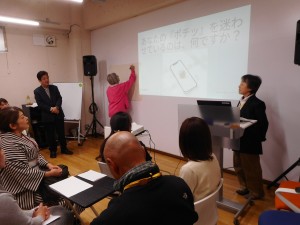 プレゼンターが自身の事業プランや課題を発表し、それをもとに参加者全員が