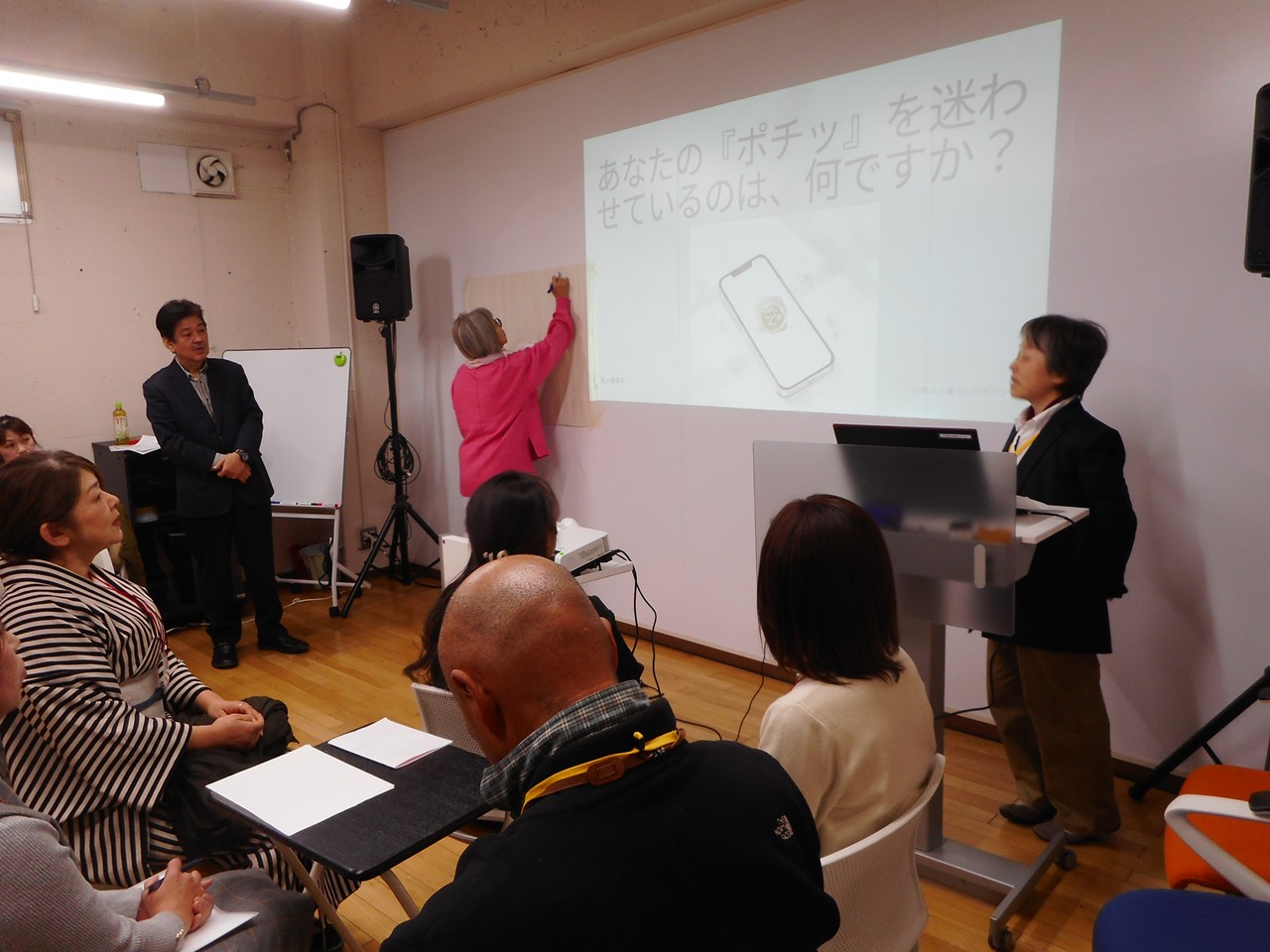 司会進行は増田、アイデアや意見をまとめ、理解を深める手書きの板書は小林理事が務め、プレゼンターへのお土産に。