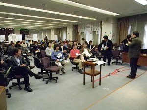 ▲東京都から参加の野木森修さん(左)。中小企業基盤整備機構の創業・新事業展開支援のための新拠点 BusiNest(中小企業大学校東京校内)を紹介した。