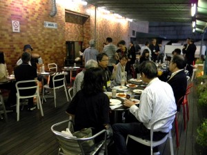 会議室とテラスをお借りしての贅沢な二部制で、「飲んで食べて学んで福島応援!